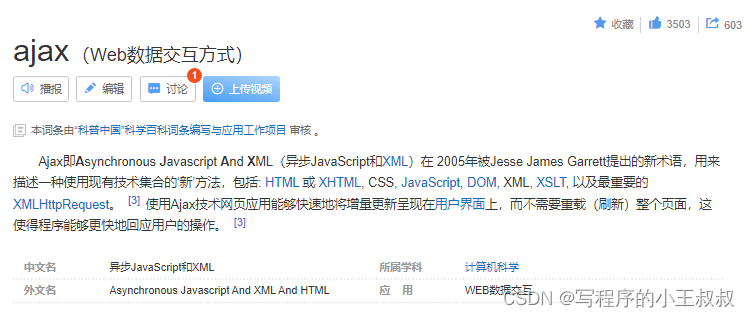 jQuery 拥有完整的 Ajax 兼容套件。其中的函数和方法允许我们在不刷新浏览器的情况下从服务器加载数据。