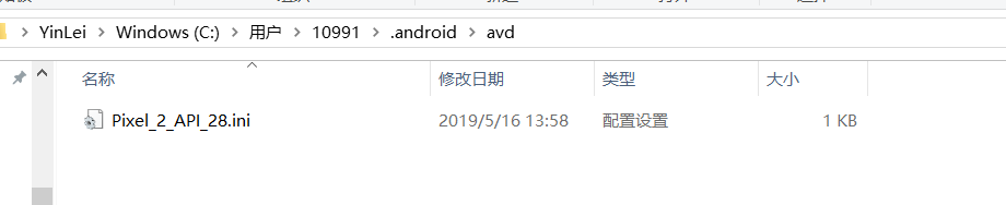 在这个目录下可以看到.avd文件和.ini文件。.avd占了我10G.上图是我转移.avd后截的。发现这个.ini文件,.ini文件就是配置文件,就像mysql安装的时候也需要我们写个.ini文件配置一下它。