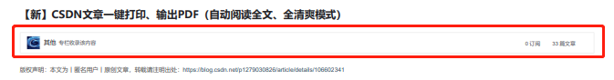 版权声明:本文为丨匿名用户丨原创文章,转载请注明出处:【新】CSDN文章一键打印、输出PDF(自动阅读全文、全清爽模式)_丨晋丨-CSDN博客_csdn打印