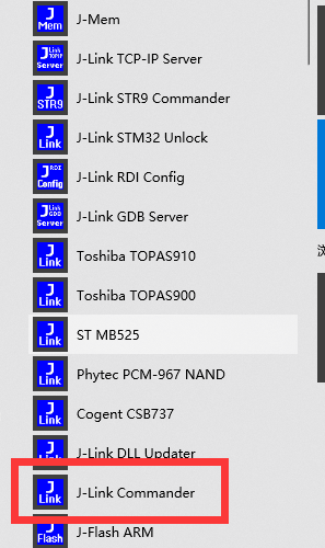 在自己的Windows平台安装好J-Link驱动之后,在开始菜单里面找到J-Link Commander的快捷方式,如图