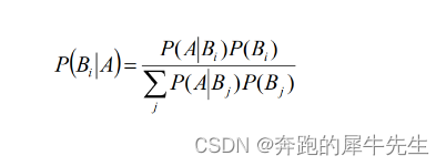- 即 P(A|B) = 条件概率*条件1本身 / 条件概率*条件1~n的概率之和 (就是一个占比关系)