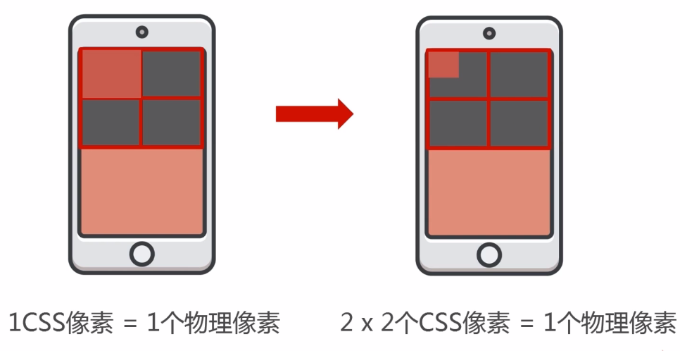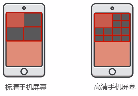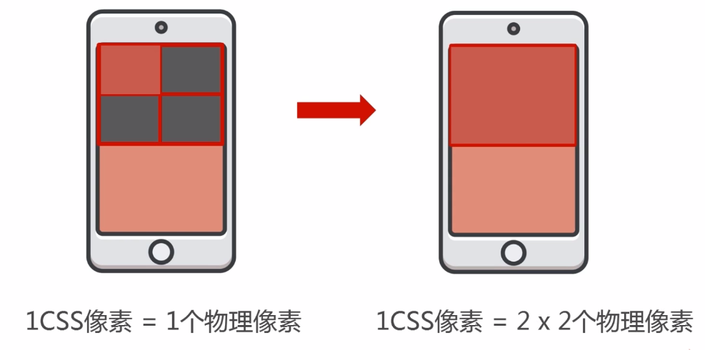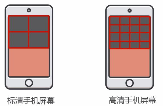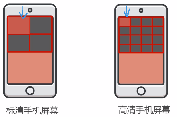 用CSS像素就可以解释上面的例子,手机实际宽和高一样,左边标清屏1个CSS像素代表1个物理像素,右边高清屏1个CSS像素代表4个物理像素。