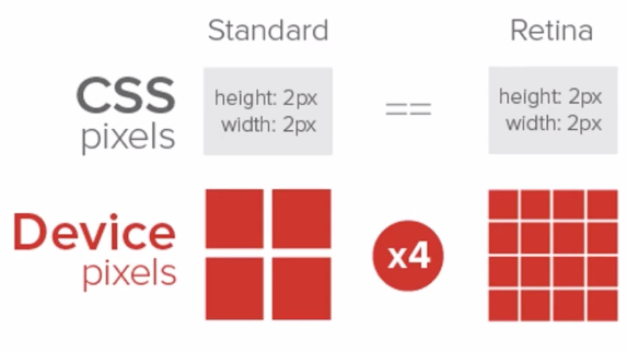 在高清屏需要4 * 4个物理像素来显示,即1个CSS像素用2 * 2个物理像素来描述