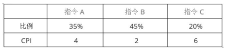 的 CPI(执行每条指令所需要的时钟周期数)及指令比例如’下表所示。执行该应