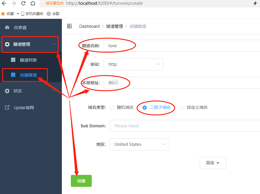 接着我们打开本地的cpolar客户端,将内网穿透的数据隧道端口指向本地的80端口,使得通过该数据隧道的访客,能被正确指向本地网页的输出端口。