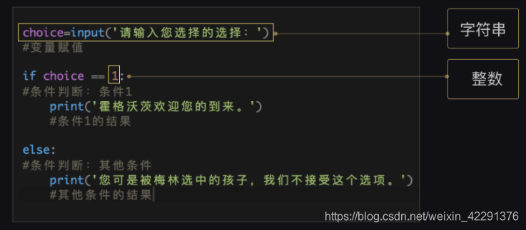if choice ==1:#再次修改对比两次结果'1'print('霍格沃茨欢迎您的到来。')