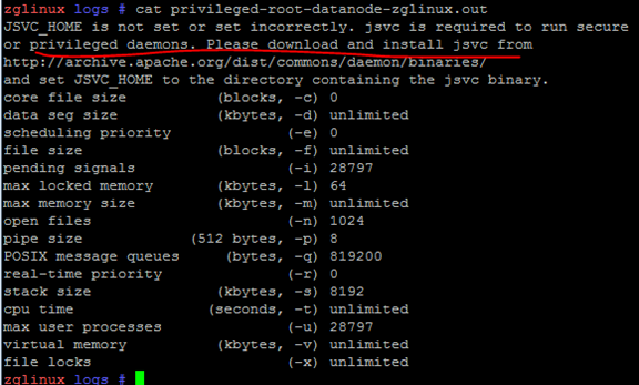 zglinux: ERROR: Cannot set priority of datanode process 2905