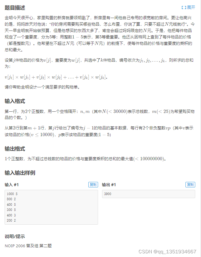 这里物品的价值变成了价格与重要度乘积之和,所以需要更新一下