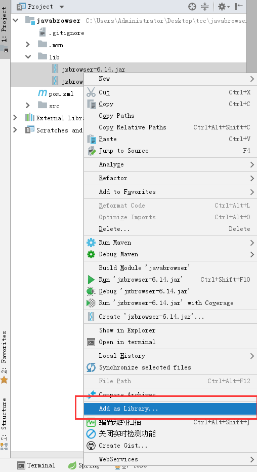 新建一个springboot项目,项目右键新建一个lib模板把上面两个jar包拷贝进去
