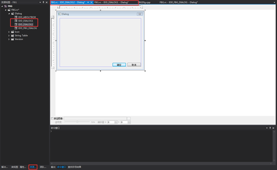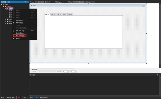 2.切换到资源界面->Dialog->插入Dialog,创建两个Dialog界面。