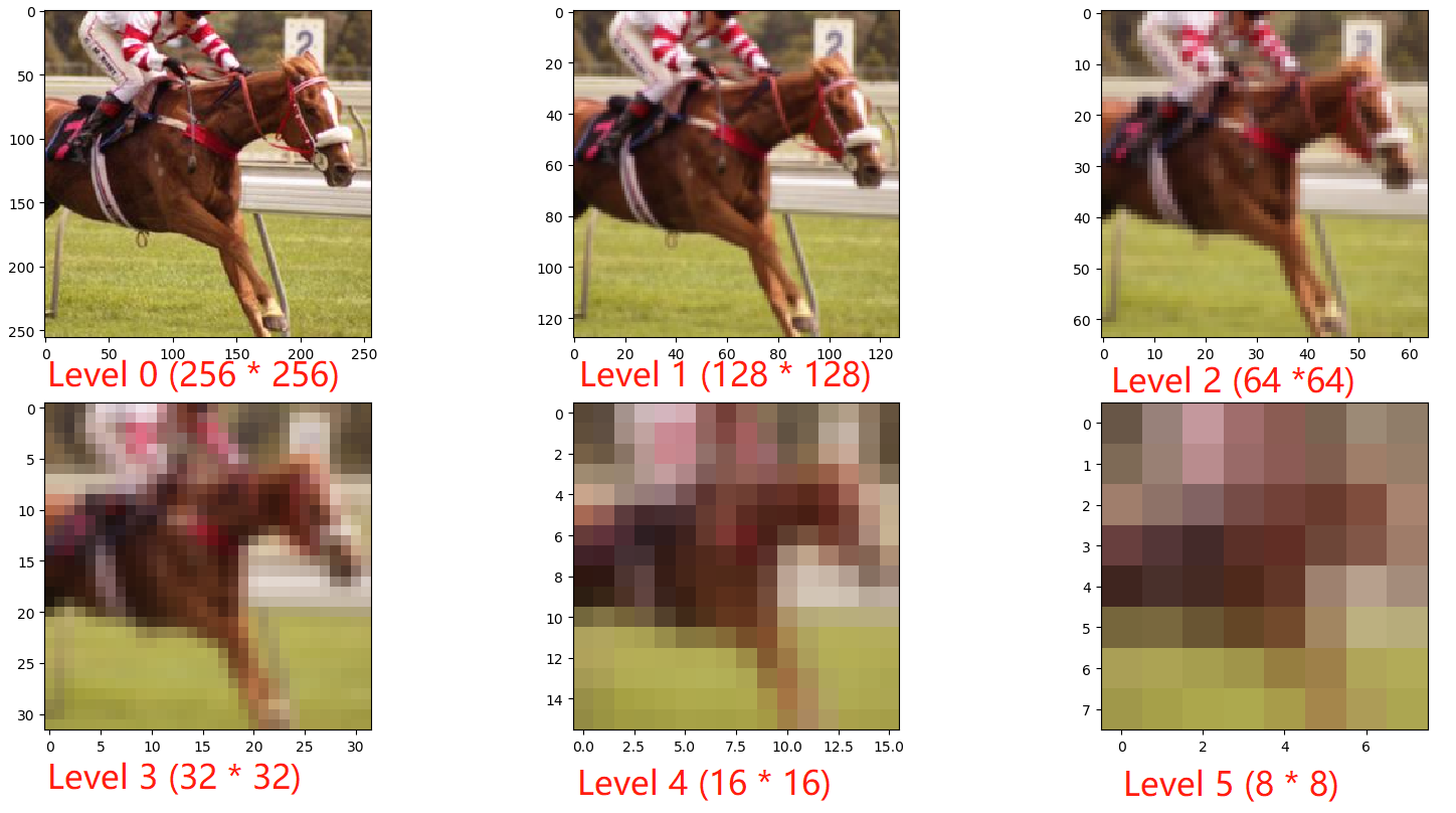 高斯金字塔模仿的是图像的不同的尺度,尺度应该怎样理解?对于一副图像,你近距离观察图像,与你在一米之外观察,看到的图像效果是不同的,前者比较清晰,后者比较模糊,前者比较大,后者比较小,通过前者能看到图像的一些细节信息,通过后者能看到图像的一些轮廓的信息,这就是图像的尺度。