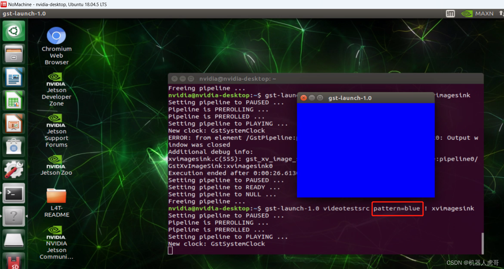 gst-launch-1.0 videotestsrc pattern=blue ! xvimagesink