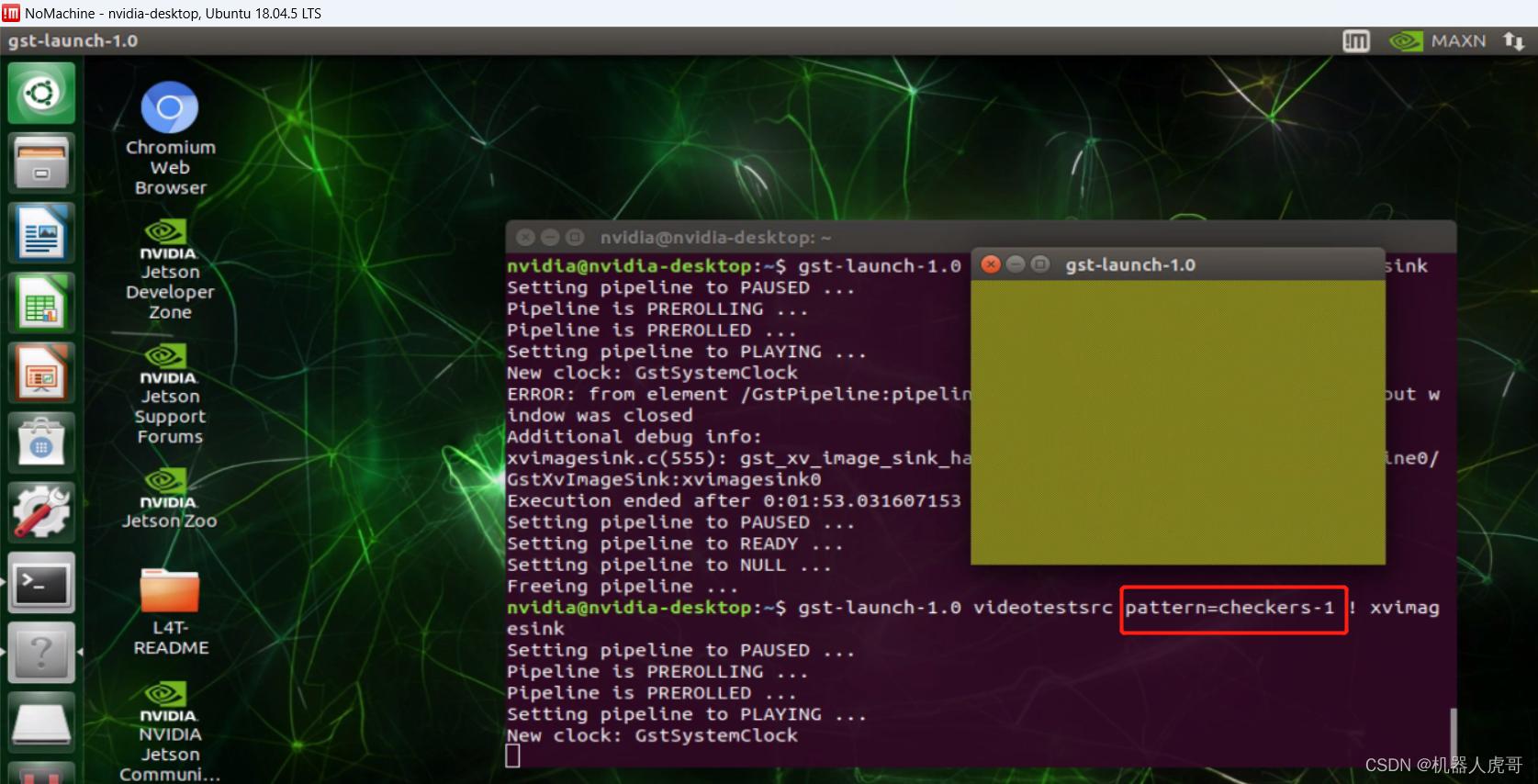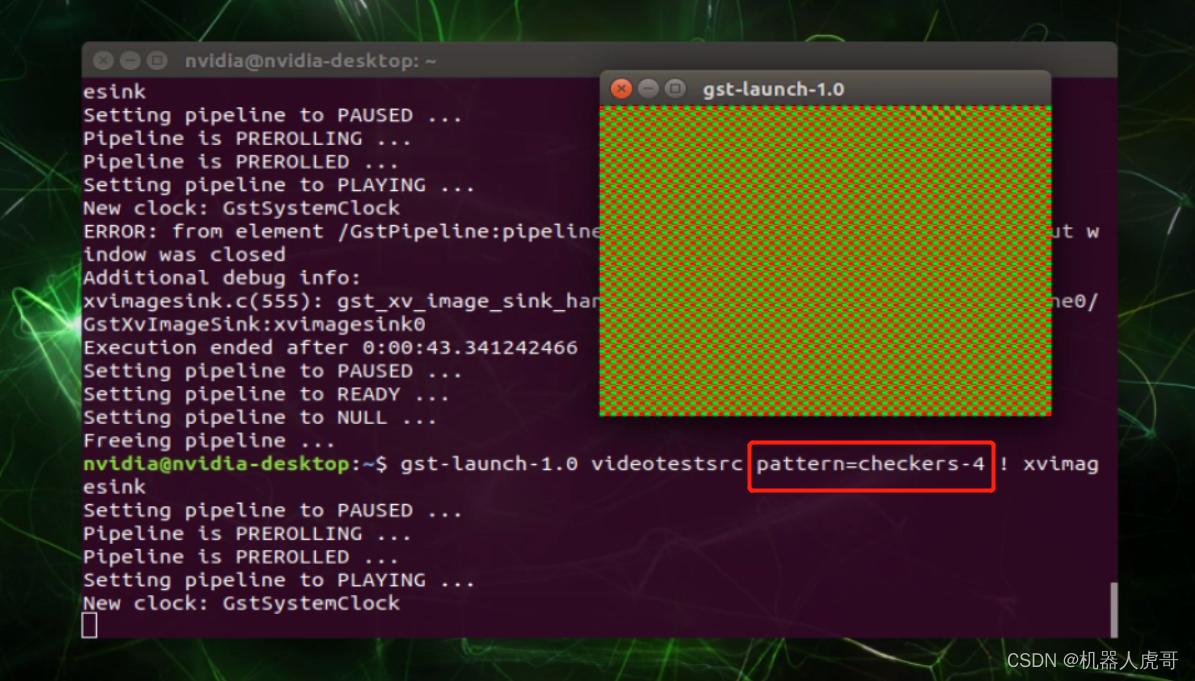 gst-launch-1.0 videotestsrc pattern=checkers-1 ! xvimagesink