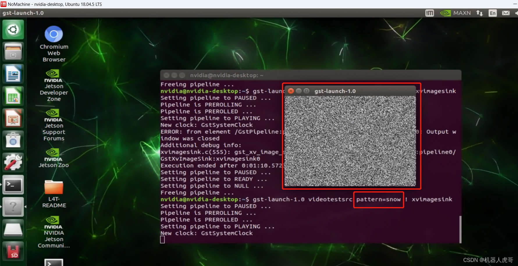 gst-launch-1.0 videotestsrc pattern=snow ! xvimagesink