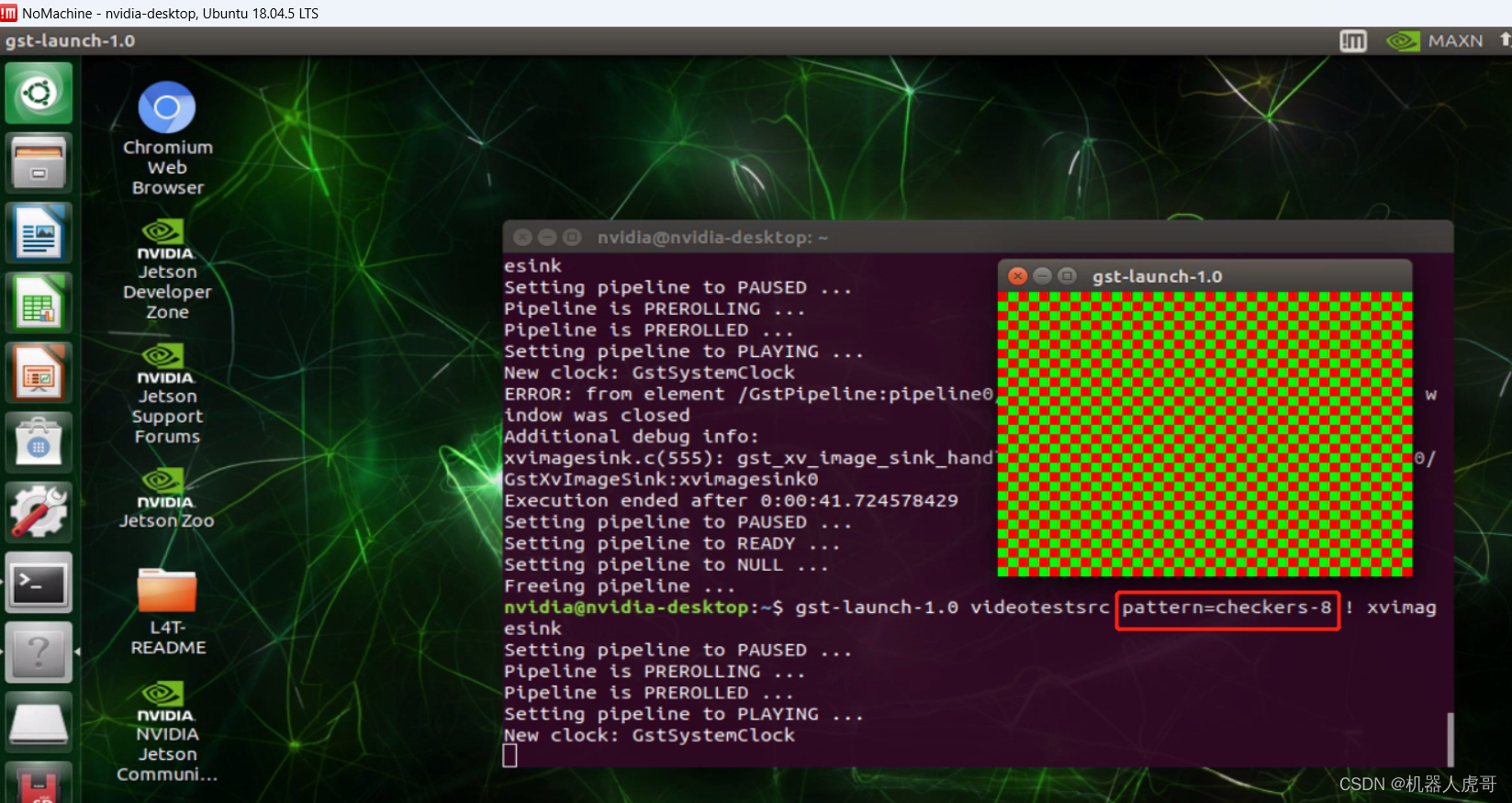gst-launch-1.0 videotestsrc pattern=checkers-8 ! xvimagesink