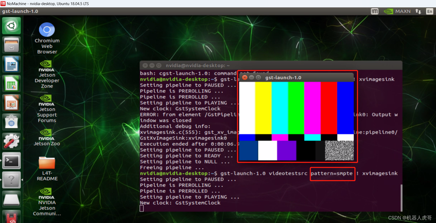 gst-launch-1.0 videotestsrc pattern=smpte ! xvimagesink