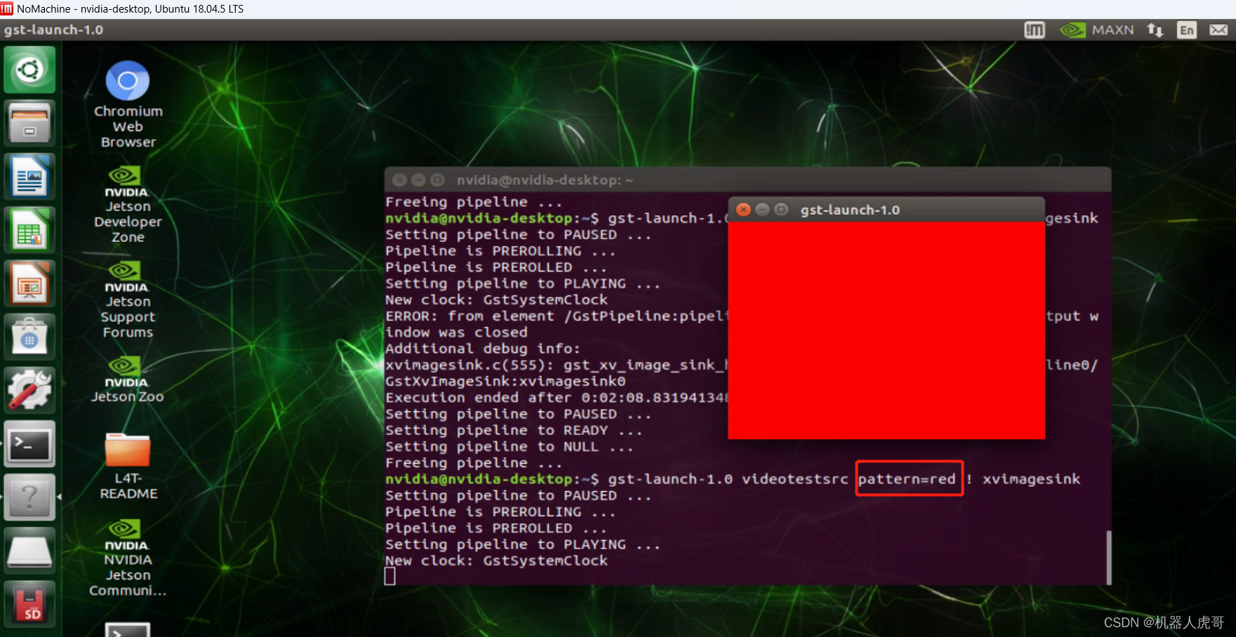 gst-launch-1.0 videotestsrc pattern=red ! xvimagesink