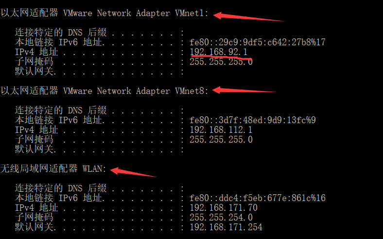 我们可以在window的cmd上ipconfig一下,出现: