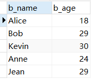 ,('Jack',23); DROP TABLE IF EXISTS table_b;