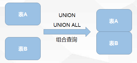 如下图所示,如果需要查出的结果包含表A和表B两个部分,则组合查询的结果相当于将这两部分纵向组合在一起