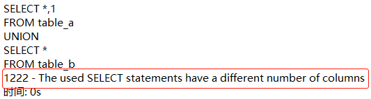 虽然结果没有抛出异常,但是连接后的表数据错乱,这样的数据已经没有意义了。所以在使用UNION或者UNION ALL进行连接操作时,应当注意连接的结果