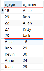 创建两张表table_a 和 table_b 用来对比UNION与UNION ALL
