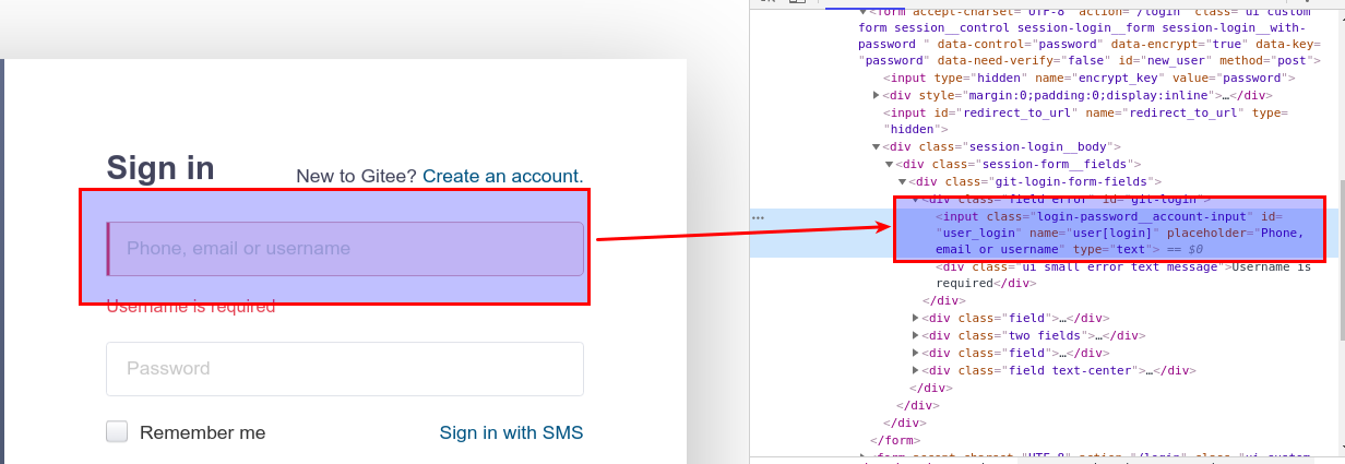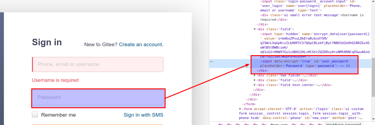从以下三张图可以看到用户名,密码,登录按钮分别对应的元素.然后通过上面介绍的元素选择方法,将对应的值提供给表单即可.