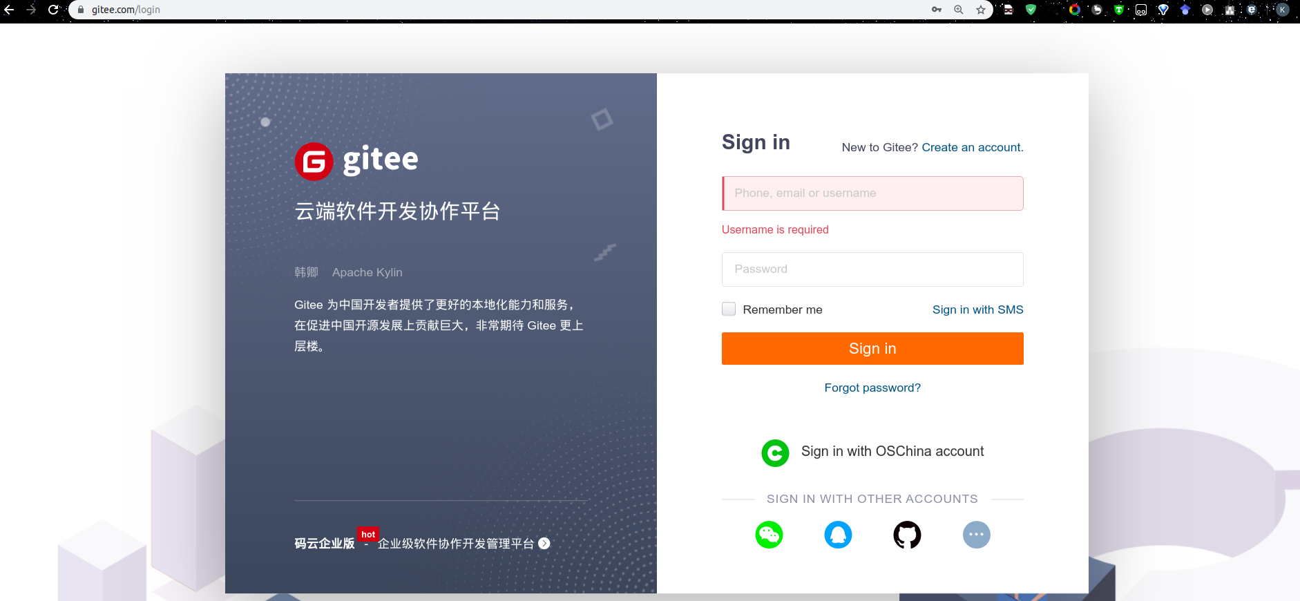 首先,在浏览器输入地址https://gitee.com/login,进入登录界面