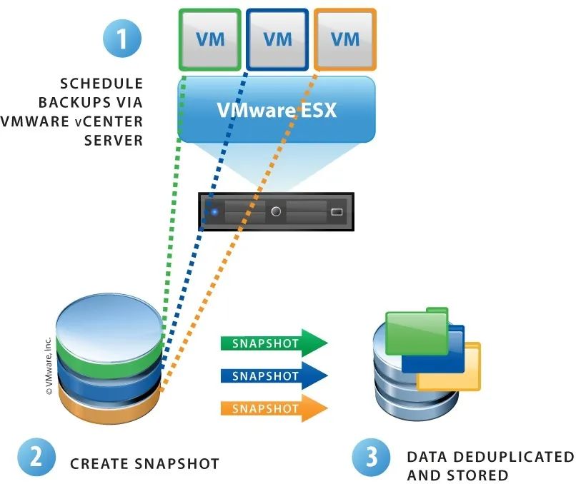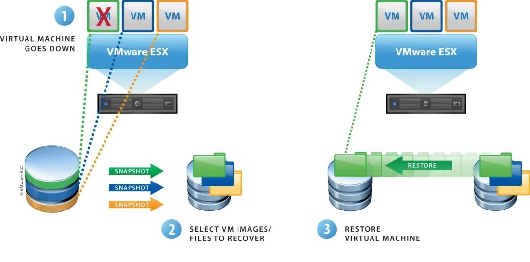 Vmware可通过自带的DataRecovery组件方便快速的实现虚拟机数据的安全备份,保证数据的安全性。