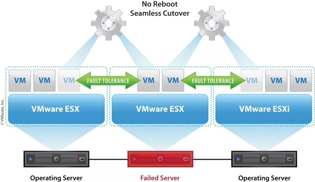 VMware Fault Tolerance (FT)可提供持续可用性,使所有应用程序都不会发生任何数据丢失或停机。