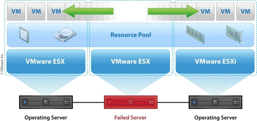 Vmware虚拟化平台通过HA集群技术,保证业务连续性。即使硬件,操作系统,应用程序任何一层出现故障,都不会影响业务的正常运行。