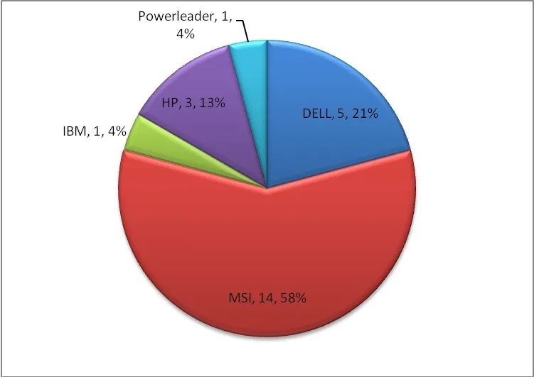 从图1-6可看出各厂商服务器的的分布情况,除了少数几台DELL与HP服务器仍在维保期内,其余的服务器早已经过了三年的维保期限,也没有再续购维保,服务器的后期服务得不到保障,而且MSI的服务器设备已经相当之陈旧,随时都有报废的可能。这部分服务器占到了总服务器的58%,这是一个非常危险的信号。
