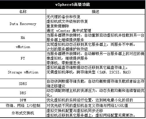 应用程序服务是vSphere内置的应用程序服务级别控制,提供了对上层应用的高可用性、安全性和可扩展性等的全面支持,以保证应用运行在一个安全、可靠、伸缩性强的平台之上。可以通过统一的方式对运行于VMware 虚拟机中的任何应用程序轻松启用应用程序服务,从而为 IT 部门提供简单的应用程序服务级别内置控制。