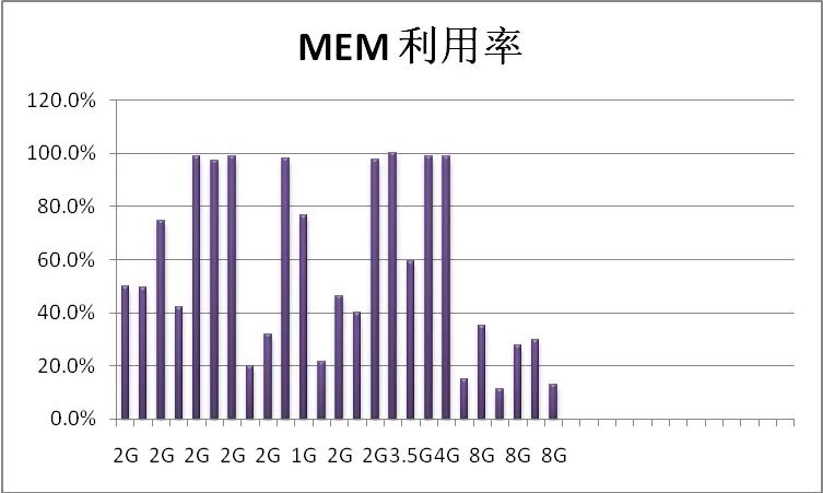 从图1-4可以很清楚的看出超过一半的服务器内存资源利用率低于50%。