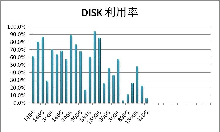 结合图1-2与图1-5可以看出,大部分的服务器标配的磁盘空间都非常小,一小部分服务器的磁盘空间利用率仍就非常低,而一部分服务器磁盘空间又明显不够,但确没有及时扩充磁盘空间。