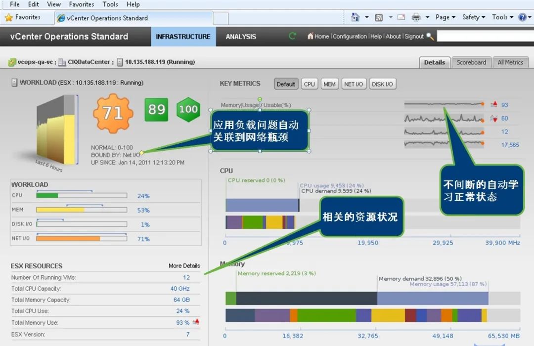 同时建议安装vCenterOperations实现对整个平台的统一监控,vCenterOperations负责收集和分析性能数据,将异常现象关联在一起,并且能够指出造成性能问题的根本原因。它还提供容量管理来优化资源利用率,并且提供基于策略的配置管理来确保遵从性并消除数量剧增和配置偏差问题。