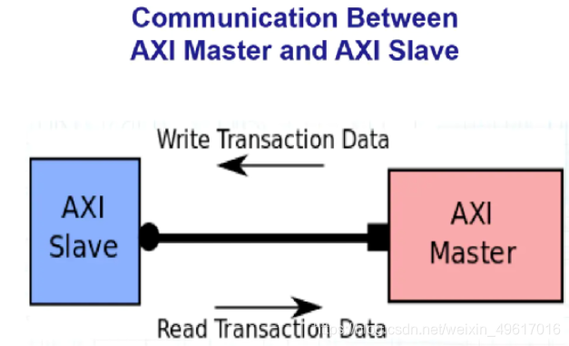 从上图很容易看出,要通过AXI总线实现通信,我们需要一个主设备/上位机(Master)和一个从设备/下位机(Slave),并通过AXI总线将其相连。我们可以将上图中的主设备假定为CPU,从设备假定为RAM(DDR)。主设备和从设备的通信主要为了实现主设备对从设备的读写控制。