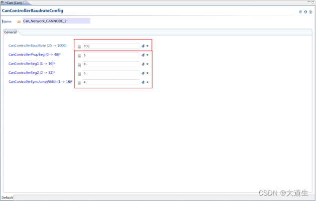 CanControllerDefaultBaudrate:波特率配置的索引号