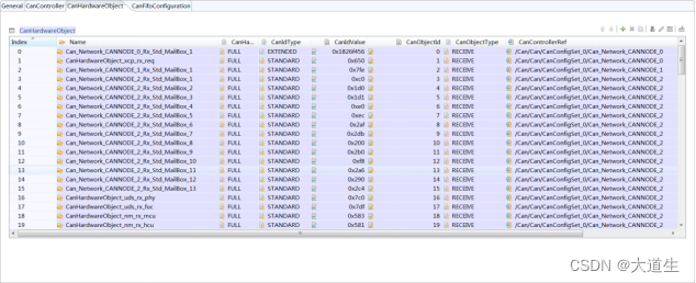 在导入ETAS 的xml文件后,将自动生成邮箱对象,但需要按照上述原则进行重新排序