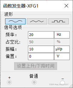 为了模拟传感器送来的微弱信号, 设置输入信号的频率为20Hz, 幅度为 10uV。如图 3 所示。