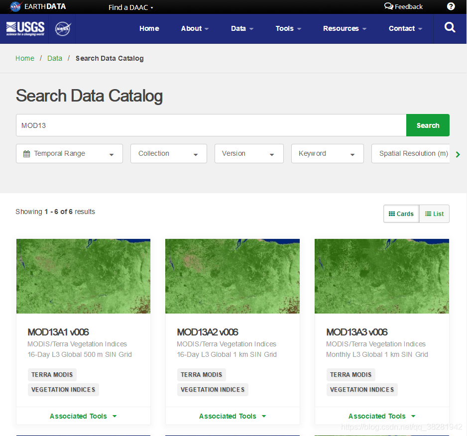 在搜索框中输入想要查询的产品信息,例如MOD13,结果如下所示: