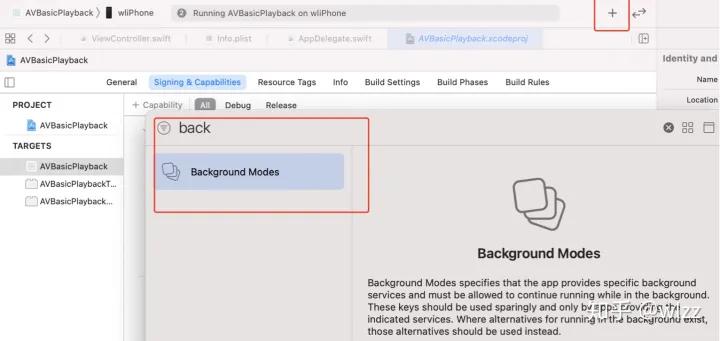 1.新建工程, 命名为AVBasicPlayback,在Info.plist中添加