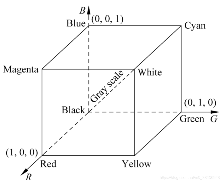 RGB色彩空间,使用不同比例的红绿蓝三基色进行加性组合来表示颜色,如计算机彩色阴极射线管、彩色光栅图形的显示器都使用RGB数值驱动电子枪发射电子,以激发荧光屏上的颜色的荧光粉发出不同亮度的光线,并通过混合相加产生各种颜色。根据RGB三基色原理,各种颜色的光都可以由红、绿和蓝3种基色加权混合而成。常见于计算机系统如下所示: