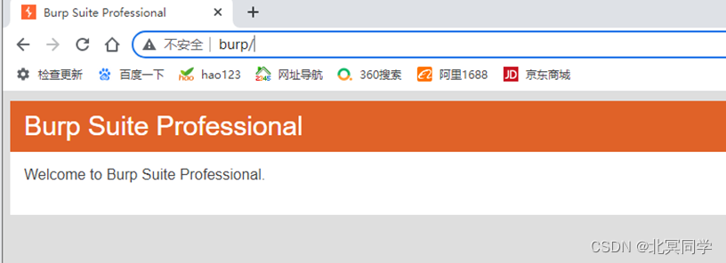 第三步:测试代理是否配置成功。在浏览器中输入http://burp/,出现“Burp Suit Professional”或“Burp Suit Community Edition”等等则表示配置成功。
