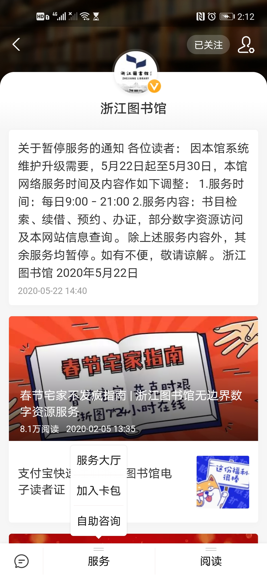 4.第3步完成后回到上一步 :服务->加入卡包->领取