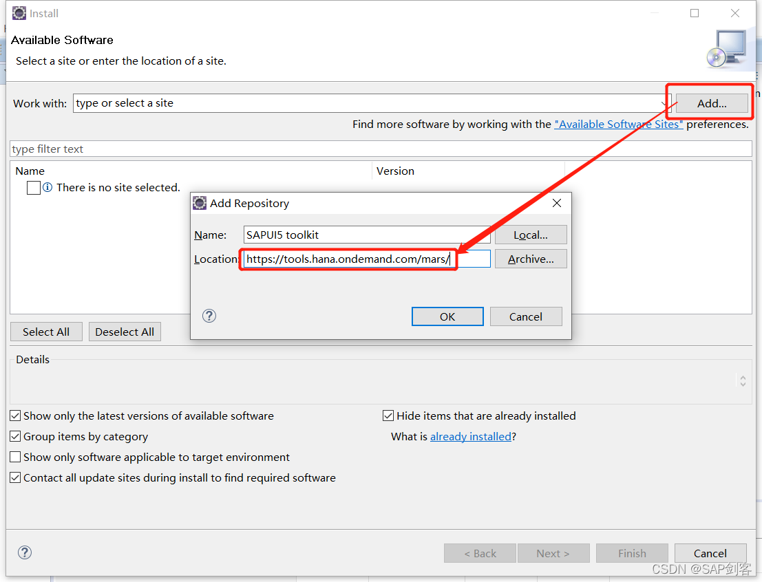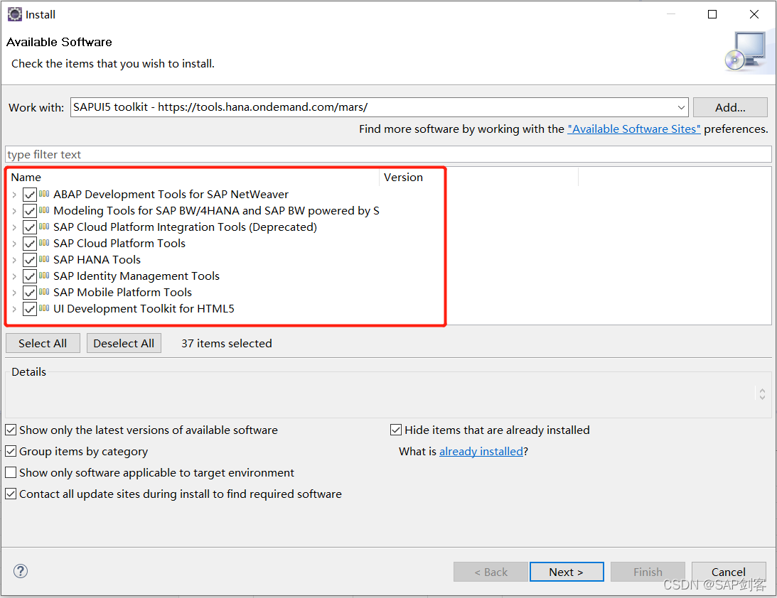 然后按照指示安装UI Development Toolkit for HTML5和ABAP Development Tools for SAP NetWeaver。