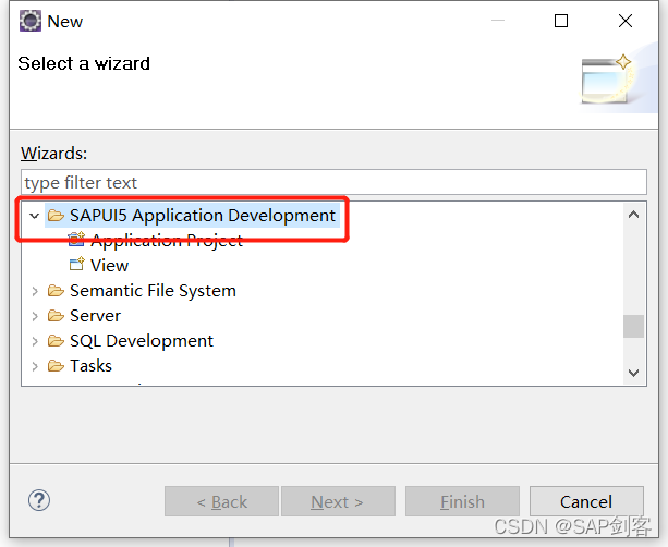 创建SAPUI5工程,只有安装了上面的工具,在新建工程的时候才可以选到“SAPUI5 Application Development”,这里选中“Application Project”点击下一步。