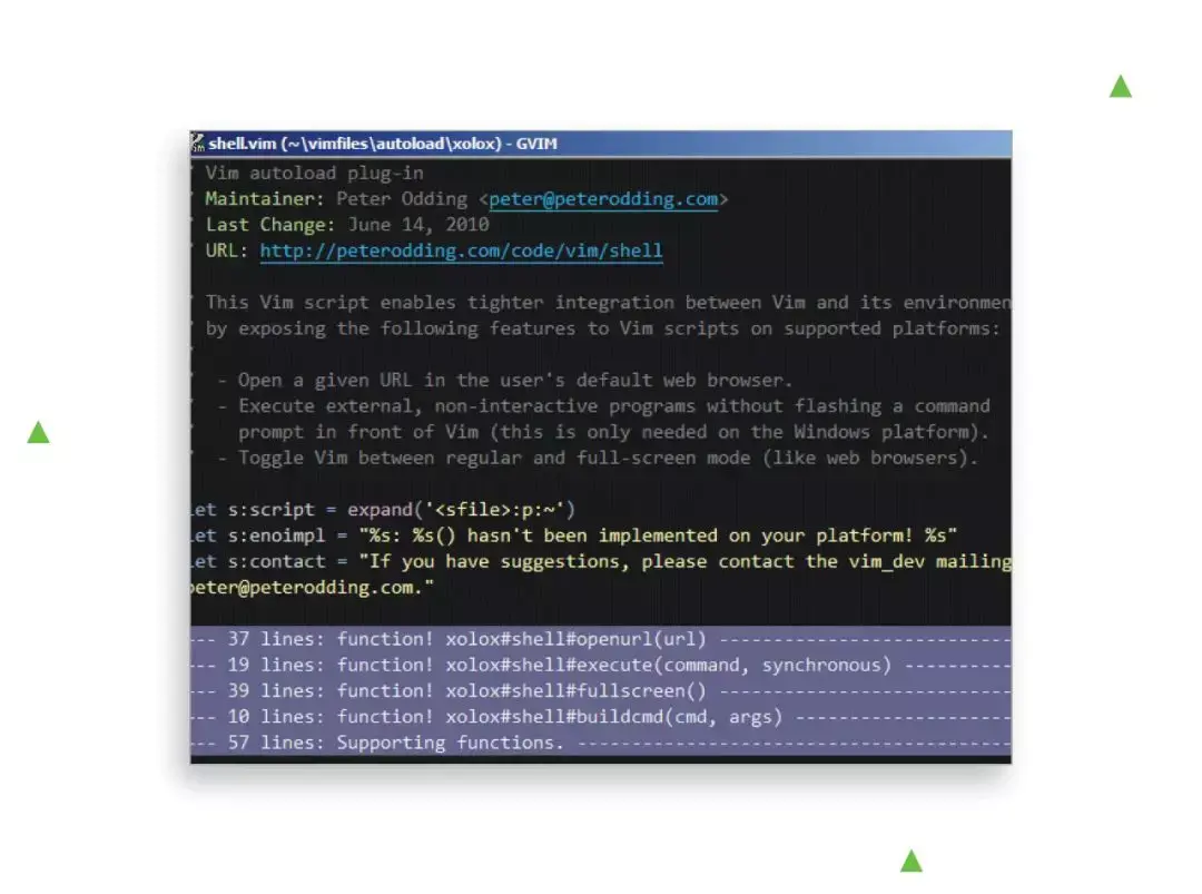 - 通过 .vimrc 文件实现不同扩展功能(如突出显示搜索结果)。