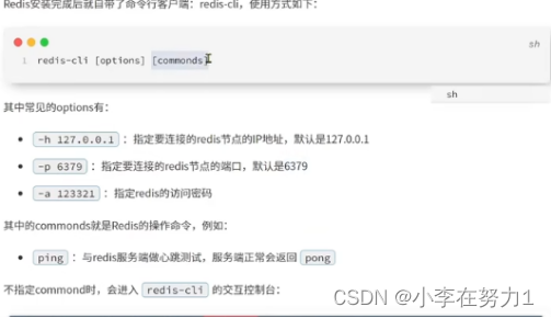 (1)redis-cli -h ip地址 -p 端口 -a 密码