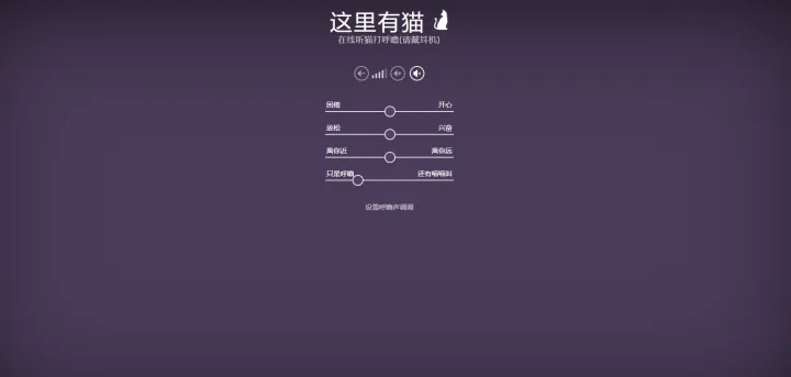 一个可以在线听猫打呼噜的网站,自己可以调整猫的状态,比如困倦或者开心,放松或者兴奋,只是呼噜或者喵喵叫,自己想怎么设置就怎么设置。